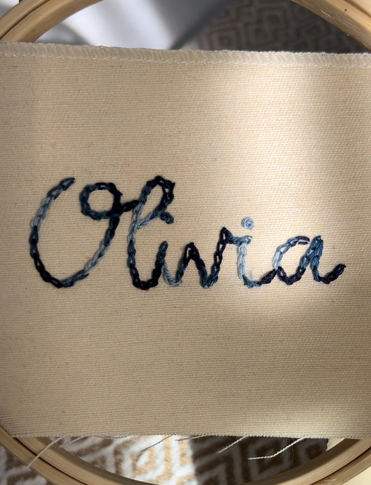 Hand-stitched name/date for quilts and dolls